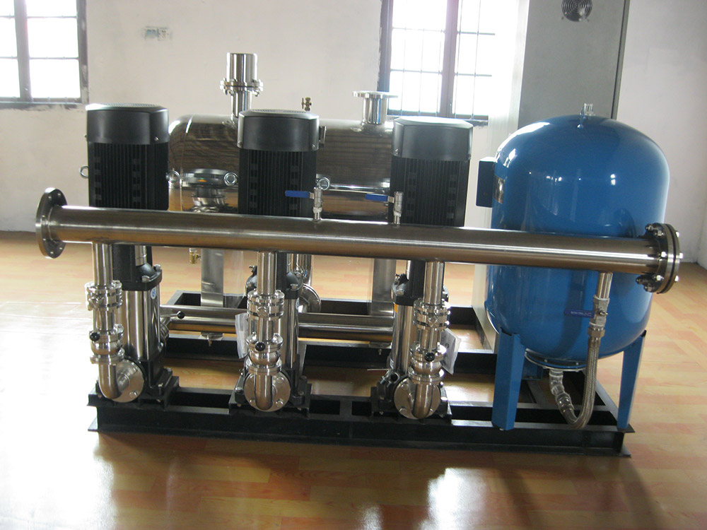 罐式疊壓無負壓給水設備一般設在地上或地下室。由市政管網自來水向單位小區內給水,運用該設備可以調度高峰用水量,增加水壓,能在高峰用水時,滿足大面積用水和高樓層用水。罐式疊壓無負壓給水設備由無負壓罐、氣壓罐、變頻水泵及自動控制系統四大部分組成,其超卓利益是,不需締造水塔,出資小、占地少,組織活絡,建成投